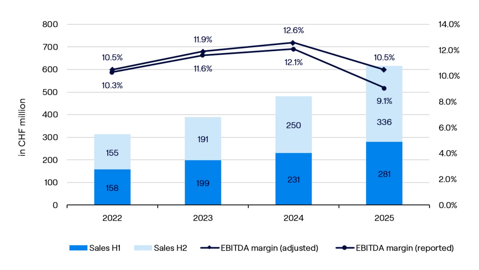 | EBITDA (adjusted) | CHF 1 000 | 32 737 | 46 264 | 60 720 | 64 629 |